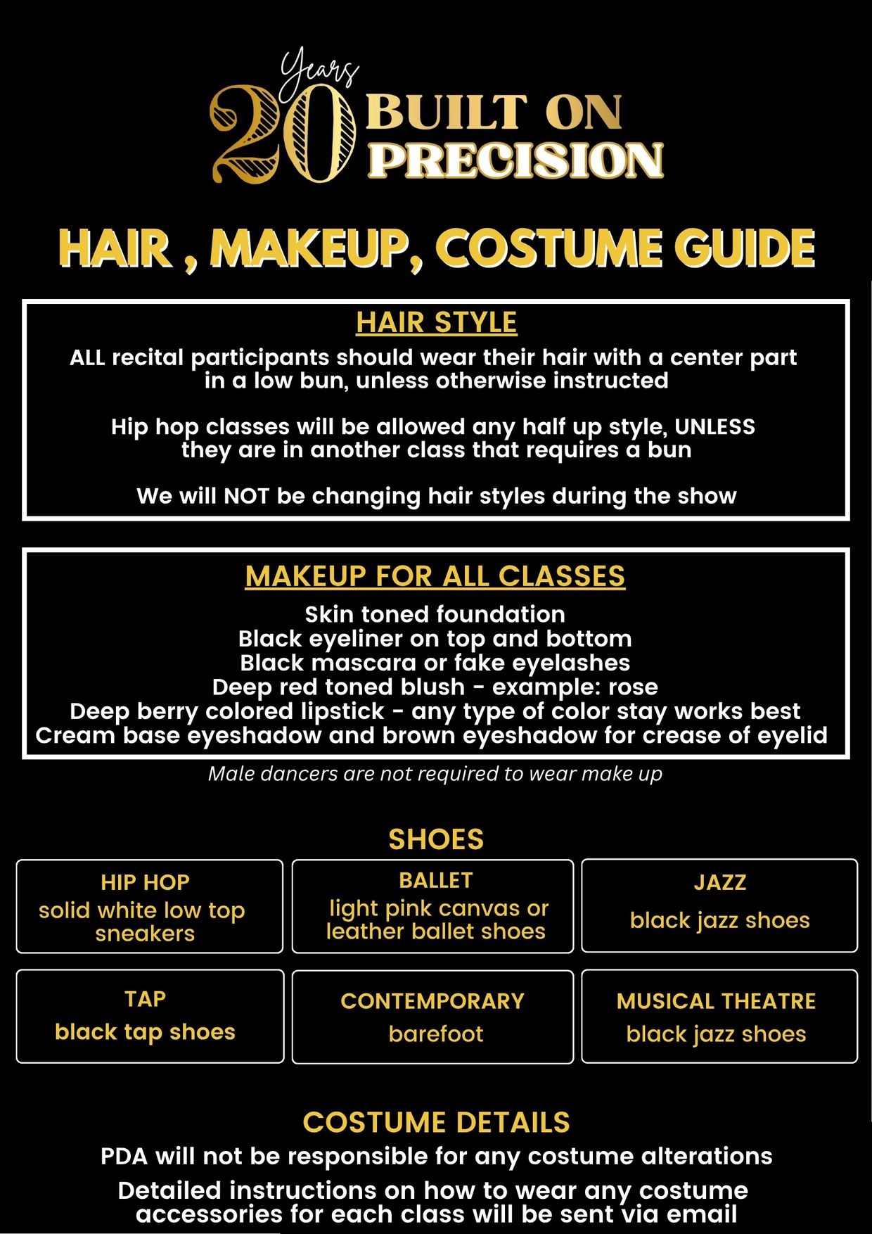 Recital Hair, Make-up & Costume Notes